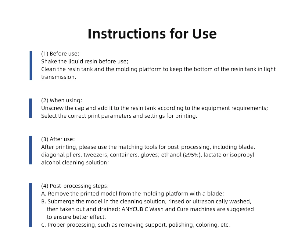 Como pioneira na impressora 3D LCD de mesa global e na impressora 3D DLP de mesa, Anycubic tem em conta a compatibilidade com as tecnologias LCD e DLP no estágio inicial de pesquisa e desenvolvimento de resina padrão, tornando a resina padrão Anycubic compatível com a impressora 3D LCD convencional e impressora 3D DLP.